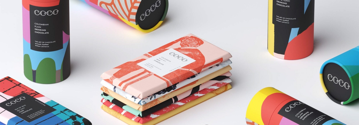 最初,COCO使用醒目的几何形状的设计包装。我们认为艺术与巧克力之间的关系可以作为品牌核心的真正区别点。根据这个想法,我们开发了品牌的“巧克力艺术”。