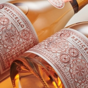 “包装采用程式化的描绘鱼的轮廓和美丽的鳞片图案。选择了三种类型的葡萄酒(红、玫瑰和白),并与独特的鱼种精心搭配。一种特殊的技术被用于在镜面金属纸上印刷,将其手工包裹在瓶子上并轻轻扭曲。这在瓶子上做得刚好足以显示里面的葡萄酒类型。